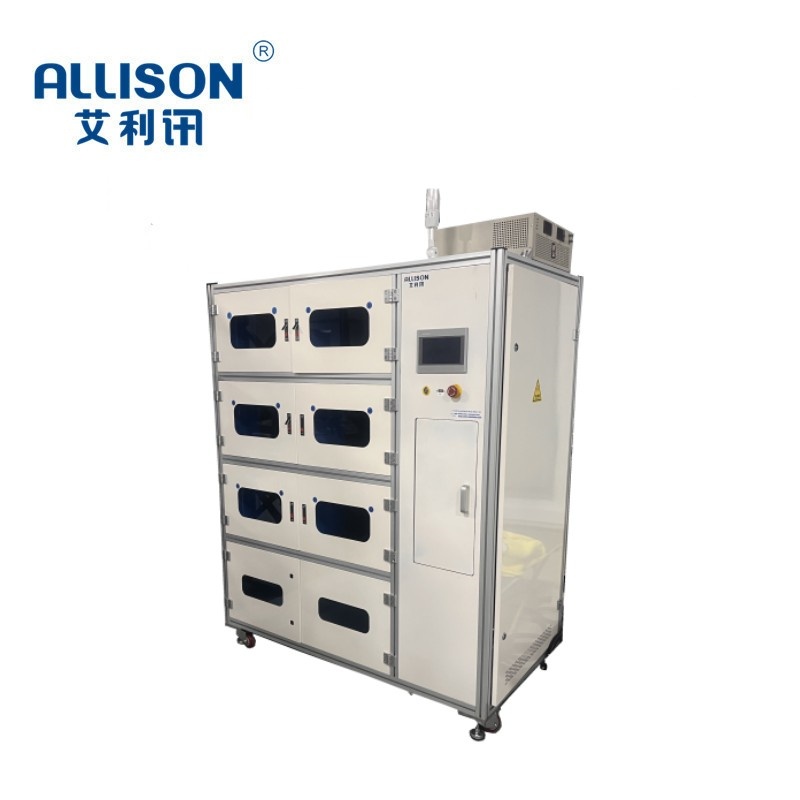 The vacuum cleaner battery charging and discharging life tester is used to monitor the long-term and interval charging and discharging aging tests of vacuum cleaner battery products. It uses an external programmable power supply to independently simulate actual charging for 20-station batteries. Aluminum resistors serve as adjustable loads to discharge the batteries. The tester utilizes PLC and current acquisition modules to collect and judge electrical parameters such as voltage and current changes during charging and discharging across 20 channels. Through relevant parameter settings, the PLC displays and records in real-time the changes in parameters such as voltage, current, resistance, capacity, temperature, as well as charging and discharging time and test times for each station, and performs data recording and USB data export