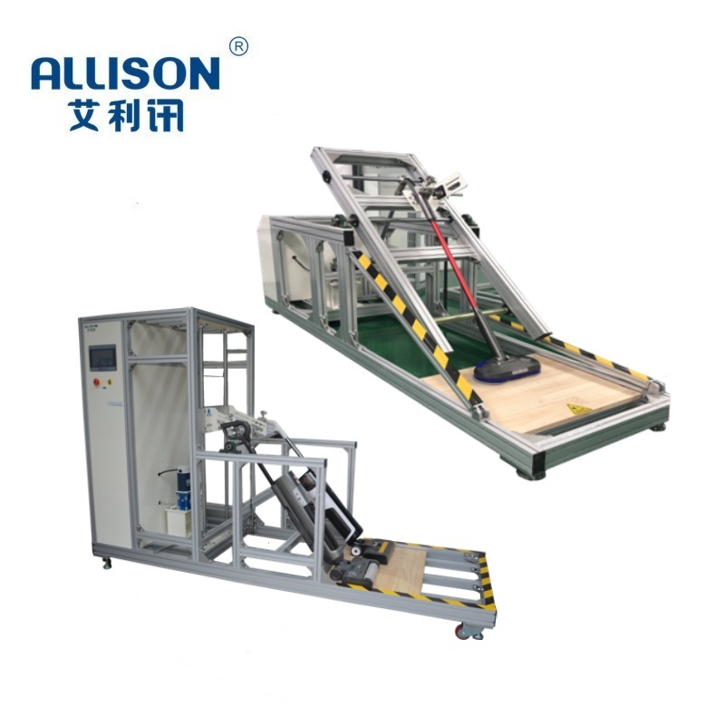 The vacuum cleaner fishing and tapping test bench is mainly designed for the durability test of the entire vacuum cleaner machine, mainly for the comprehensive strength and durability life test of the handle, floor brush strength, internal components, etc. in the whole machine. Clamp and fix the vacuum cleaner handle at both ends with a fixture, and use a reduction motor transmission mechanism to drive the vacuum cleaner for fishing tapping tests. Adjust the relevant fixtures to achieve tapping tests at different angles. The test bench is controlled by PLC program and the relevant parameters are set and recorded through a 7-inch touch screen. The device has advantages such as stable operation and easy operation