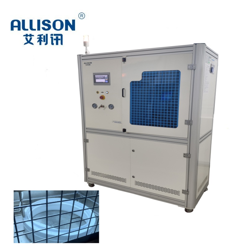 According to the relevant testing standards for washing machines, the equipment meets the requirements for static pressure, progressive pressure, burst and other pressure holding and ultimate pressure tests on products such as balance rings. The tested products are subjected to pressure holding/burst tests with a maximum water pressure of 0.1-5.0 Mpa. Using high-precision pressure sensors for pressure value collection and judgment. Pressure constant pressure control is carried out through a testing machine PLC, which reads and records pressure values in real-time and generates pressure curves. Perform pressure judgment, leakage judgment, pressure limit judgment, etc. by setting upper and lower limits. Complete relevant experiments through parameter setting and contro