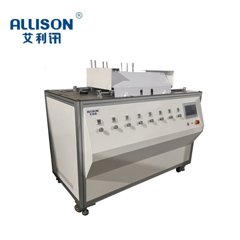 The washing machine button life testing machine is suitable for durability life testing of buttons on touch screen panels/mechanical buttons and other related control panels. Adopting PLC and touch screen control system, stable operation, simple and convenient maintenance. Through PLC program control, single point/multi-point button linkage operation and program loop action can be performed. Realistic simulation of button linkage usage. Perform durability button life testing on the entire machine