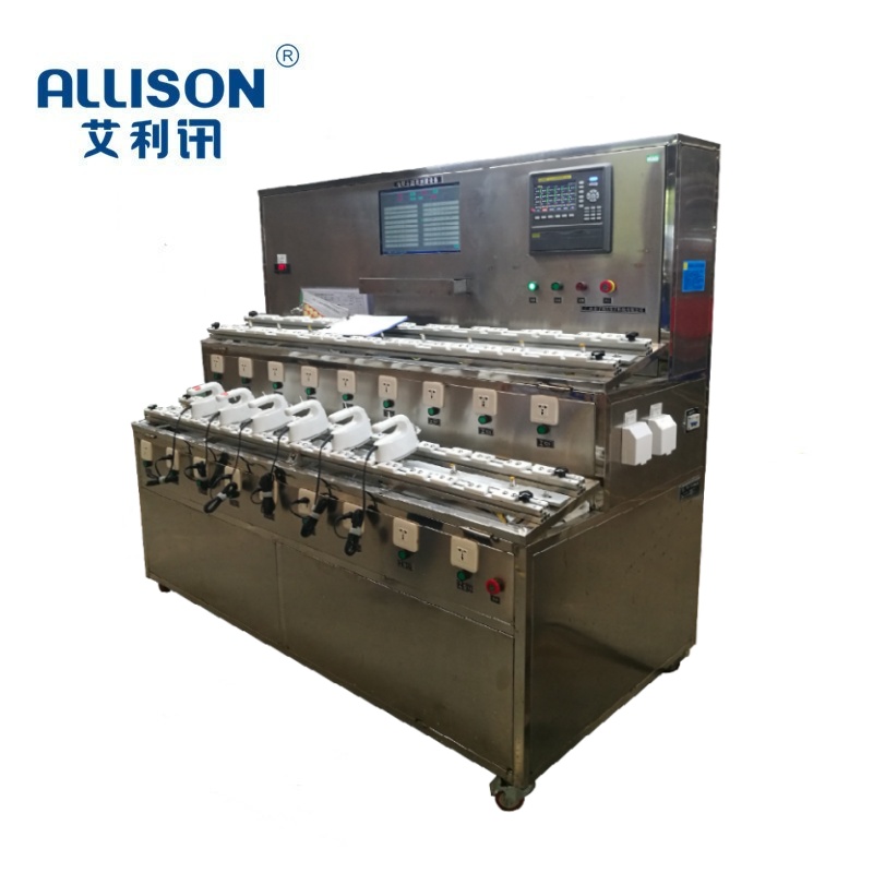 The electric iron temperature detection table is mainly designed for rapid temperature detection of electric iron products on the production line. Through the equipment, it can quickly and effectively judge all the heating plates and overall performance data of the product before it is taken offline. The equipment has an automatic judgment function and can automatically determine whether the product is qualified or unqualified according to relevant settings. After the product is qualified, cooling and packaging processes can be carried out on the product. The testing platform adopts an industrial computer and two 19 inch displays for real-time display at both workstations. Convenient monitoring for both operators to conduct inspections. The control system automatically saves relevant detection data and exports the detection data in document format. The export method is USB data export. The operating interface can be switched between Chinese and English. To facilitate use in different countries.