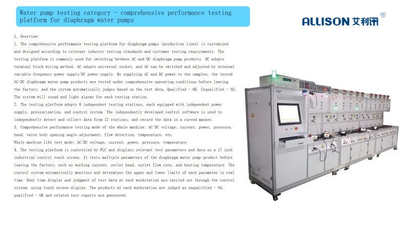 The flow capacity testing equipment is customized according to customer requirements, and the equipment meets the comprehensive performance testing of refrigeration valves, water pumps, water one-way valves, manual valves and other spare parts. The testing equipment is controlled by PLC and displayed on a 17 inch touch screen. Multiple tests are conducted on the tested samples, including water pressure resistance test, switch valve pressure difference, internal leakage, head and flow characteristics, switch valve durability, etc. Through relevant testing conditions, the tested samples are comprehensively evaluated for durability under operating conditions. The equipment is mainly used to detect whether the product meets the relevant design requirements before leaving the factory.