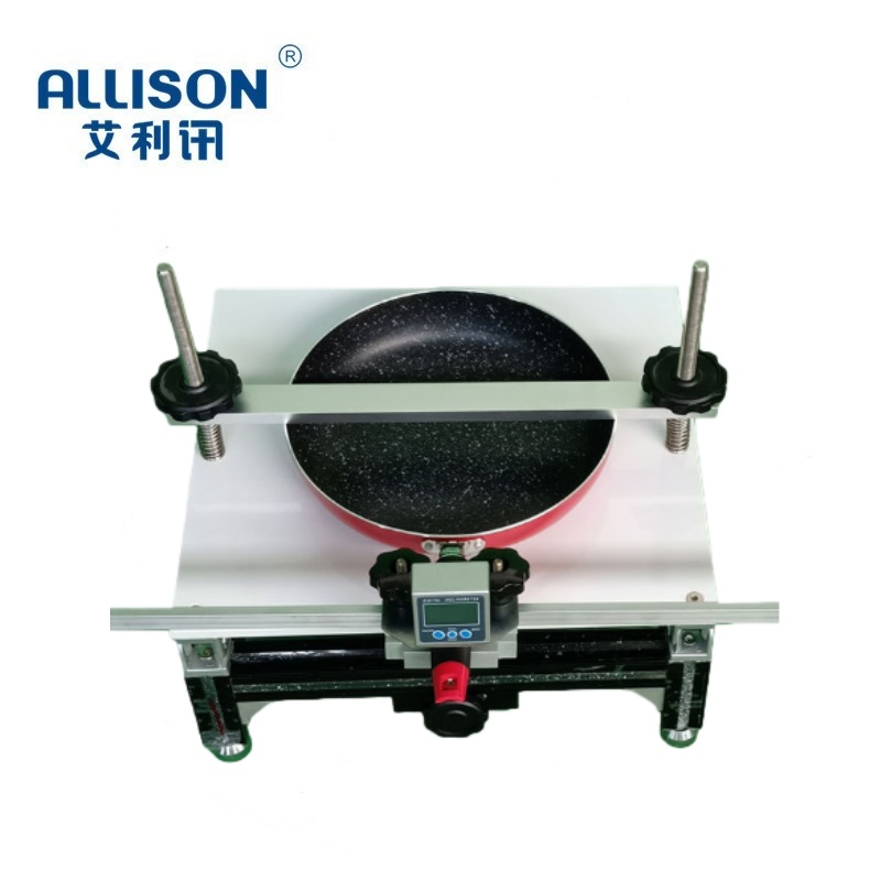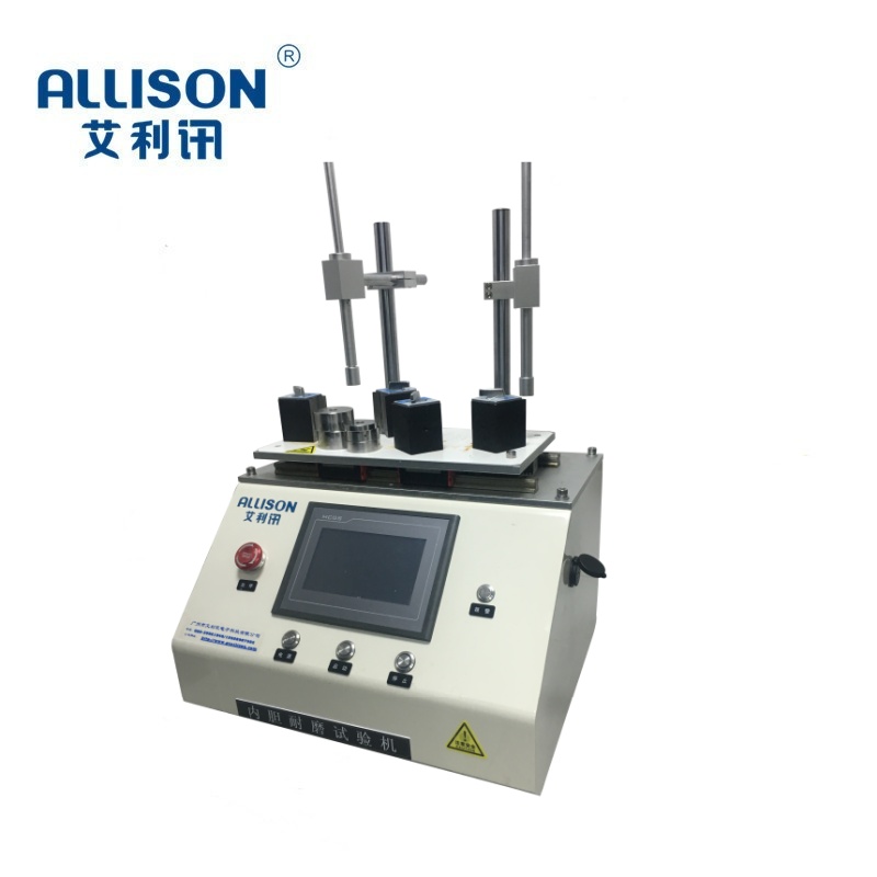 The wear-resistant testing machine is mainly used to simulate and test the anti friction ability of the coating on the surface of the inner liner of household appliances (such as rice cookers, frying pans, etc.). By conducting standardized friction tests, evaluate the wear resistance life, adhesion, and overall quality of coatings, providing key basis for product quality control and new material development. The inner liner sample to be tested is fixed on a fixture, allowing specific friction heads (such as erasers, steel wool, scouring pads, etc.) to come into contact with the coating surface under a certain load, and repeatedly rub along a specified trajectory (such as linear reciprocating or rotational motion). Assess the wear resistance level of the coating by monitoring the number of friction cycles when the coating is exposed.