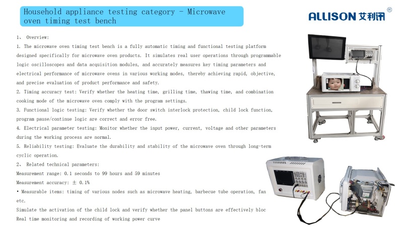 operations through programmable logic oscilloscopes and data acquisition modules, and accurately measures key timing parameters and electrical performance of microwave ovens in