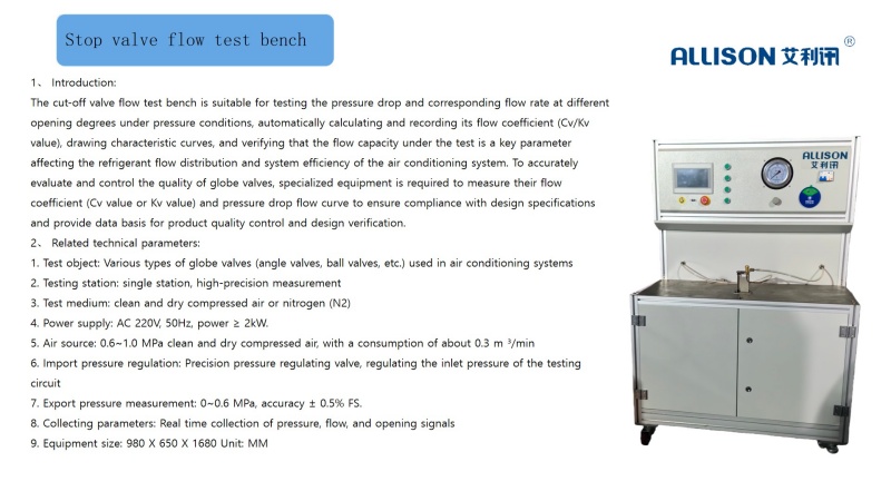 The capillary flow characteristic testing platform is mainly suitable for testing the flow pressure characteristics of different specifications of inner diameters, lengths, and internal roughness. To accurately control product quality and ensure compatibility with the refrigeration system, high-precision specialized equipment is used to measure its flow characteristics under different operating conditions. Through testing, the refrigerant mass flow rate of the capillary tube is measured at different inlet pressures under precise control conditions, and its flow pressure value is automatically plotted and its flow coefficient is calculated, providing reliable data for the selection, production inspection, and research and development of capillary tubes.