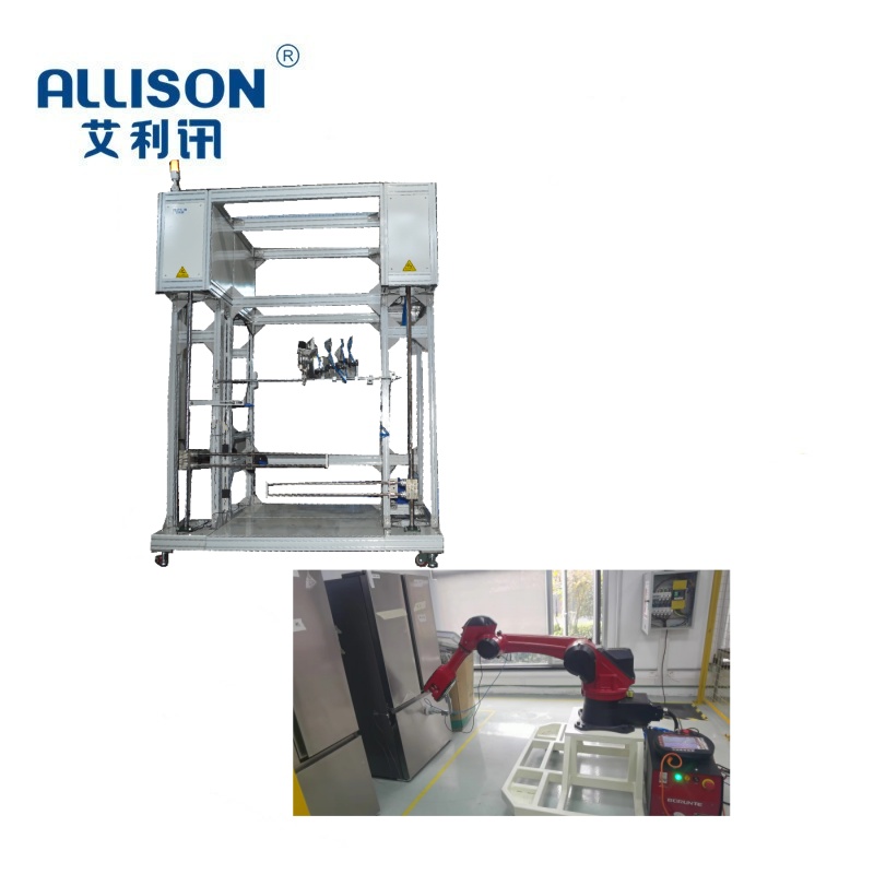 The refrigerator door opening and closing life testing machine is mainly used to test the durability of the door body and door hinges, to check the quality and reliability of the door body, and is suitable for conducting opening/closing ability tests on cabinet doors. Using a stepper motor as the driving source, the push rod is driven to rotate back and forth, thereby completing the reciprocating action of "opening and closing" the cabinet door. The opening and closing are controlled by PLC, simulating the action of manually opening and closing the door. By using PLC control to perform up and down door opening test actions on the product, combined with flexible and versatile fixtures, it can meet the requirements of various types of washing machine/electric oven doors, with strong universality, simple operation, convenient control, and low failure rate.