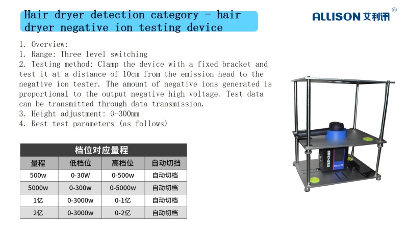 he hair dryer wind speed testing device is mainly designed for testing the wind speed of hair dryers (air ducts) at different levels. The testing device is composed of seamless steel pipes with a diameter of 10CM and a length of 1.5M. The two ends of the testing device are fixed to the testing port with high-temperature resistant nylon material, and the left side is the air inlet of the hair dryer. Different specifications of products can be tested according to different diameters. On the right side are points for air volume and wind speed, which can be connected to wind speed and pressure devices respectively. Users can choose according to the implementation testing situation. The wind speed testing device is commonly used for quality assessment of wind ducts and plays an important technical reference value. It is also a necessary testing method in the wind duct industry, and is therefore adopted by major quality inspection agencies.