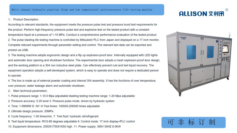 The valve body opening pressure and water pressure resistance life testing machine is mainly designed for pressure opening testing, water pressure resistance testing, pressure relief testing machine, and sealing testing of valves, valve bodies, and switch products. The testing machine can work continuously and conduct uninterrupted testing to meet the testing requirements. It adopts PLC main control and touch screen display operation; The main accessories are imported and well-known domestic brands, which work stably and reliably, and are easy and convenient to operate. The relevant test data supports USB export.