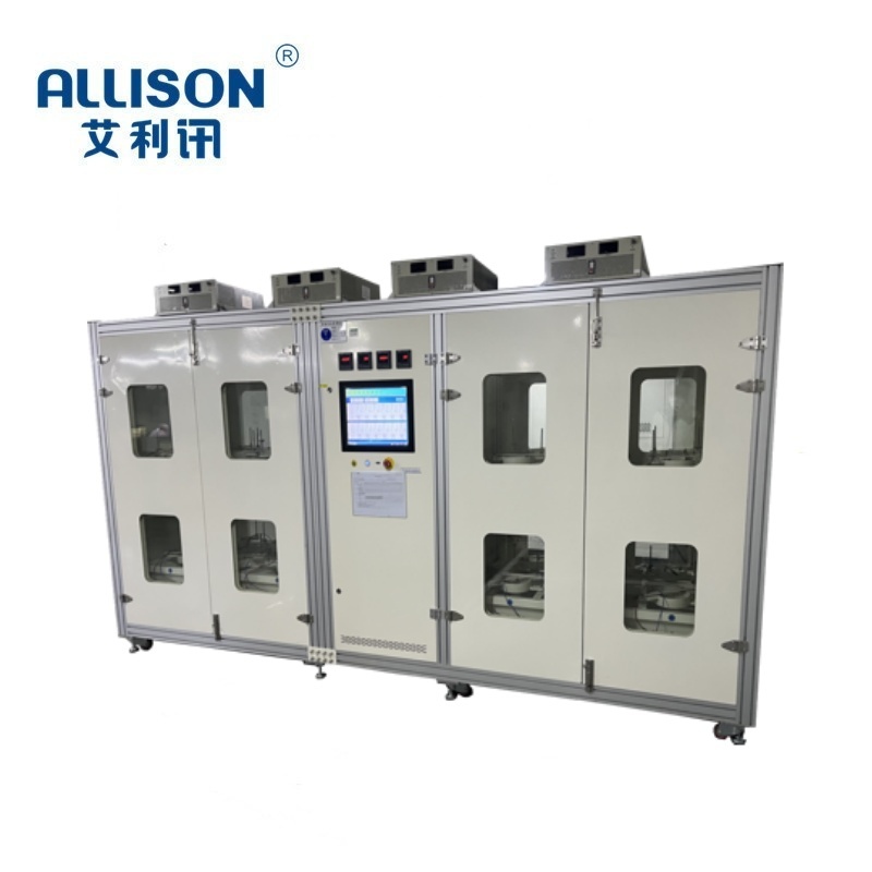 The lifespan testing machine for wiping motor components is mainly used for testing the torsional loading durability of wiping motor components. To verify the service life of the product through long-term aging testing under actual simulated loading conditions, the testing machine is controlled by PLC program and simulated loading testing is conducted on the tested wiping motor components through an external magnetic powder brake. Perform long-term/intermittent torsion tests on the tested motor with an adjustable load of 0-50Nms. 0-60V provides independent power supply for each workstation, and monitors the current and voltage of each workstation. The relevant detection data is exported via USB. The testing machine has strong universality, simple operation, convenient control, and low failure rate.