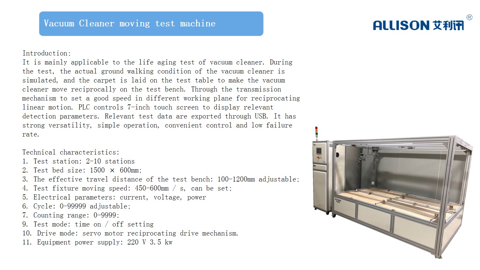 12. Equipment power supply: 220V 50/60Hz 2.5kw
