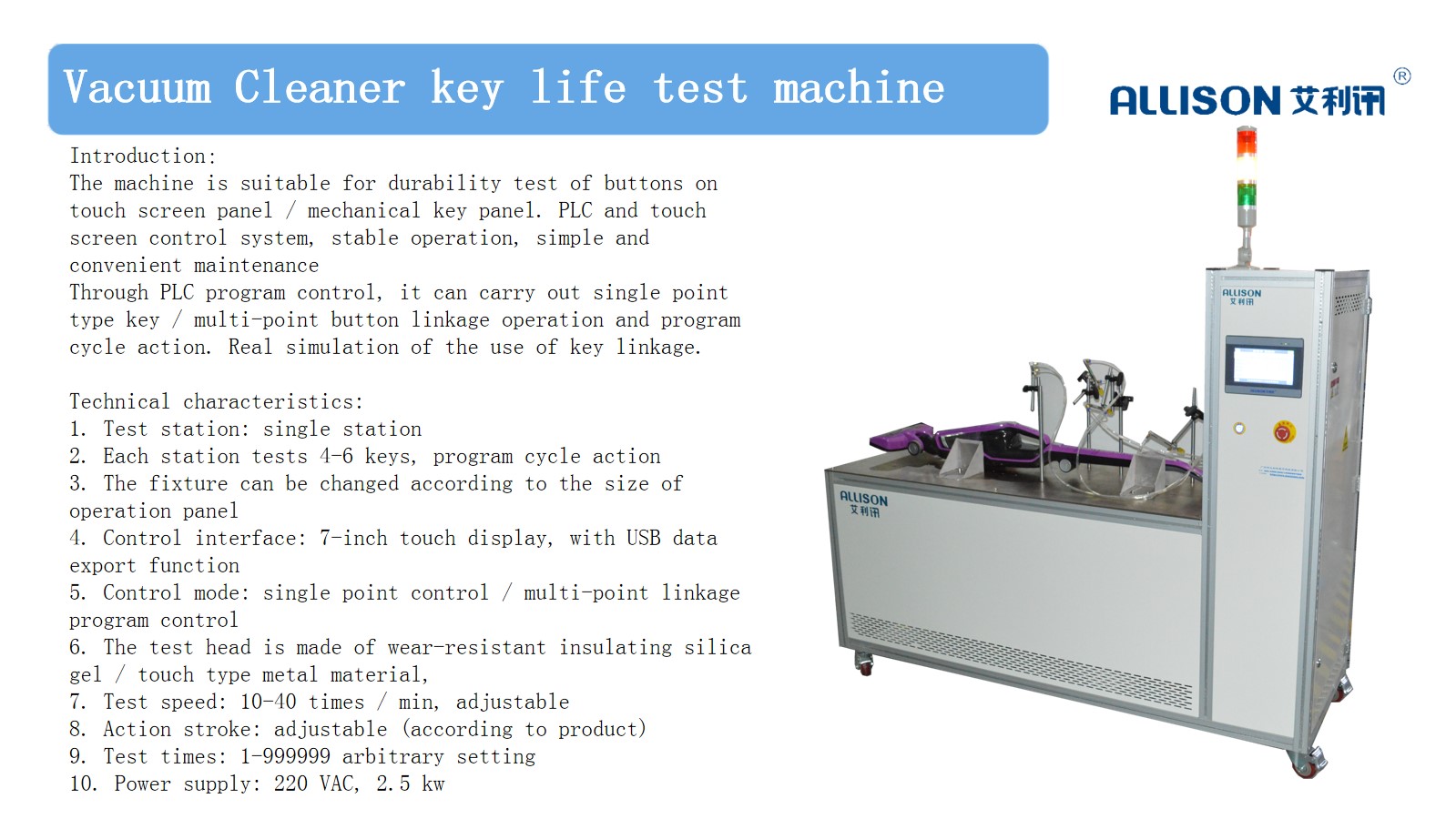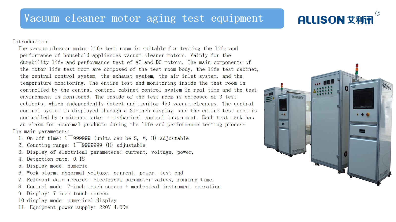 7. Equipment power supply: AC220V /50HZ 2KW