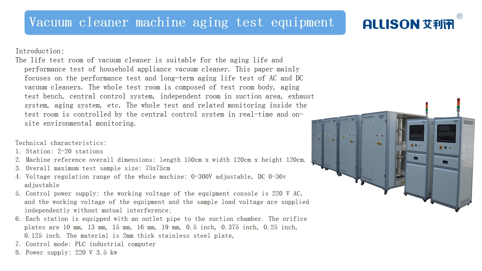 11. Equipment power supply: AC220V /50HZ 3.5KW
